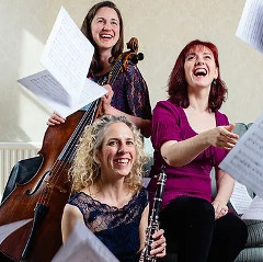 For 15 years, Jennifer Brown (clarinet), Harriet Davidson (cello) and Claire Haslin (piano) have been performing across concert hall, schools and social settings. Their repertoire ranges from the classics (Beethoven, Brahms), to hidden gems (Ireland, Glinka), and all-female composer programmes (Schumann, Farrenc, Tailleferre & Walker)